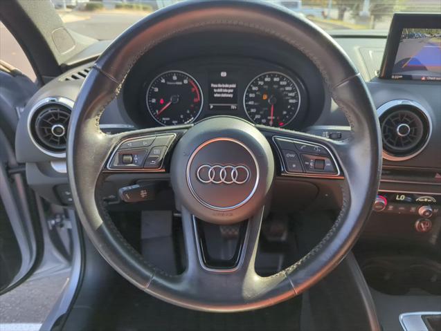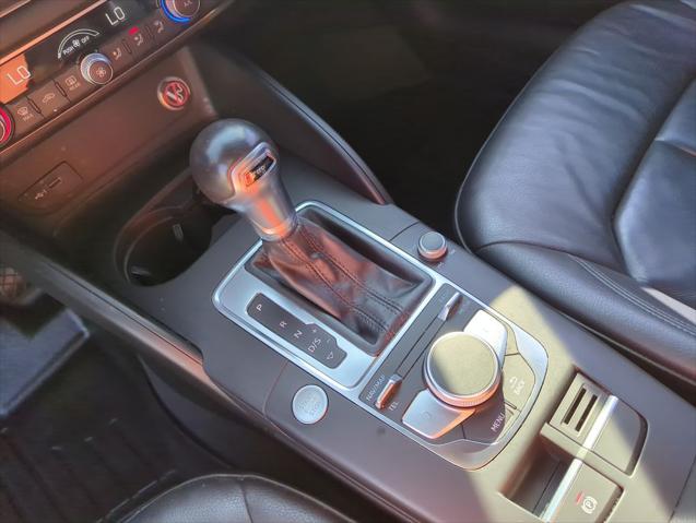 Black Leather 10 Speakers 4-Wheel Disc Brakes ABS brakes Air Conditioning Alloy wheels AM/FM radio: SiriusXM Anti-whiplash front head restraints Audi Advanced Key Audi Side Assist Audi smartphone interface (Apple CarPlay/Android Auto) Automatic temperature control Brake assist Bumpers: body-color CD player Convenience Package Delay-off headlights Delete Front License Plate Holder Driver door bin Driver vanity mirror Dual front impact airbags Dual front side impact airbags Electronic Stability Control Exterior Parking Camera Rear Four wheel independent suspension Front anti-roll bar Front Bucket Seats Front Center Armrest Front dual zone A/C Front reading lights Full LED Headlights Heated door mirrors Heated Front Bucket Seats Heated front seats High intensity discharge headlights: Xenon plus High-Gloss Aluminum Window Surrounds Illuminated entry Knee airbag Leather Seating Surfaces Leather Shift Knob Leather steering wheel LED Interior Lighting Package LED Taillights w/Dynamic Turn Signals Low tire pressure warning Occupant sensing airbag Outside temperature display Overhead airbag Panic alarm Passenger door bin Passenger vanity mirror Power door mirrors Power driver seat Power moonroof Power steering Power windows Radio data system Radio: Audi Concert AM/FM/CD/SAT Player Rain sensing wipers Rear anti-roll bar Rear fog lights Rear reading lights Rear seat center armrest Rear window defroster Remote keyless entry Security system Speed control Speed-sensing steering Speed-Sensitive Wipers Split folding rear seat Steering wheel mounted audio controls Tachometer Telescoping steering wheel Tilt steering wheel Traction control Trip computer Turn signal indicator mirrors Variably intermittent wipers Wheels: 18"" x 8"" 5-Double-Spoke-Design Bi-Color Black Leather.2019 Audi A3 2.0T Premium FrontTrak 7-Speed Automatic S tronic 2.0L 4-Cylinder TFSI Silver Metallic26/35 City/Highway MPG
