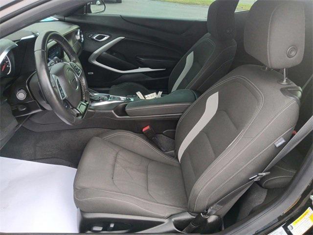 2022 Chevrolet Camaro LT1 Power Precision and Thrill in Every DriveGet ready to command the road in this Black 2022 Chevrolet Camaro LT1. This muscle car pairs iconic style with potent performance boasting a 6.2L V8 engine and 10-Speed Automatic Transmission. With its 2.77 Rear Axle Ratio and Dual Mode Exhaust the Camaro LT1 delivers an exhilarating drive with 455 horsepower while maintaining reasonable efficiency at 16 city / 26 highway MPG. This Camaro is built to excite offering a powerful presence and modern tech to keep you connected.Key Features:Engine: 6.2L V8 for a thrilling high-powered experience on any road.Transmission: 10-Speed Automatic with Paddle-Shift Manual Controls allowing for smooth shifts and enhanced driver engagement.Interior: Comfortable cloth seats with 6-Way Power Front Passenger Seat Adjuster and 8-Way Power Driver Seat Adjuster.Technology: Apple CarPlay and Android Auto Bluetooth and Chevrolet Infotainment 3 Plus System with Premium Audio.Exterior: Bold black exterior with Alloy Wheels Dual Mode Exhaust and fully automatic headlights.Safety: Equipped with ABS brakes Electronic Stability Control multiple airbags Rear Parking Camera and a Security System for peace of mind.Fuel Efficiency: Delivers 16 city / 26 highway MPG impressive for a V8 performance car.Why Choose the 2022 Chevrolet Camaro LT1?The 2022 Camaro LT1 combines Chevrolets heritage of power with the technology and comfort of a modern sports car. With its sleek design adrenaline-pumping V8 engine and advanced features this Camaro is a perfect choice for those seeking excitement on every drive.